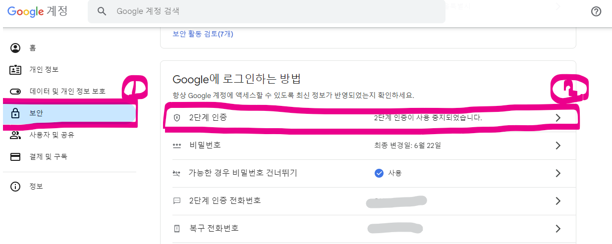 어쨌든 그래서 구글 2단계 인증을 풀어야 할 때가 있다.